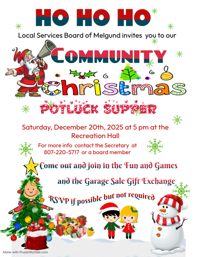 Melgund Township Christmas Potluck Community members are invited to the annual Christmas potluck. Melgund Recreation 9 Dec 2025 1 minute read Community members are invited to the annual Christmas potluck. About the Author Melgund Recreation Administrator Visit Website View All Posts Tags: Northwestern Ontario Ontario Arts Ontario Recreation Post navigation Previous: Today’s Short Stories to Read: December 9, 2025Next: Today’s Short Stories to Read: December 10, 2025 Leave a Reply Cancel replyYour email address will not be published. Required fields are marked *Comment * Name Email Website Save my name, email, and website in this browser for the next time I comment. Related News 2 minutes read Borups Corners Melgund Township Local Services Board of Melgund – Nov. 18, 2024 Melgund Recreation 21 Nov 2025 3 minutes read Melgund Township LSB November News Melgund Recreation 20 Nov 2025 2 minutes read Borups Corners Melgund Township Minutes for Art Borups Corners: Nov 17. Melgund Recreation 19 Nov 2025